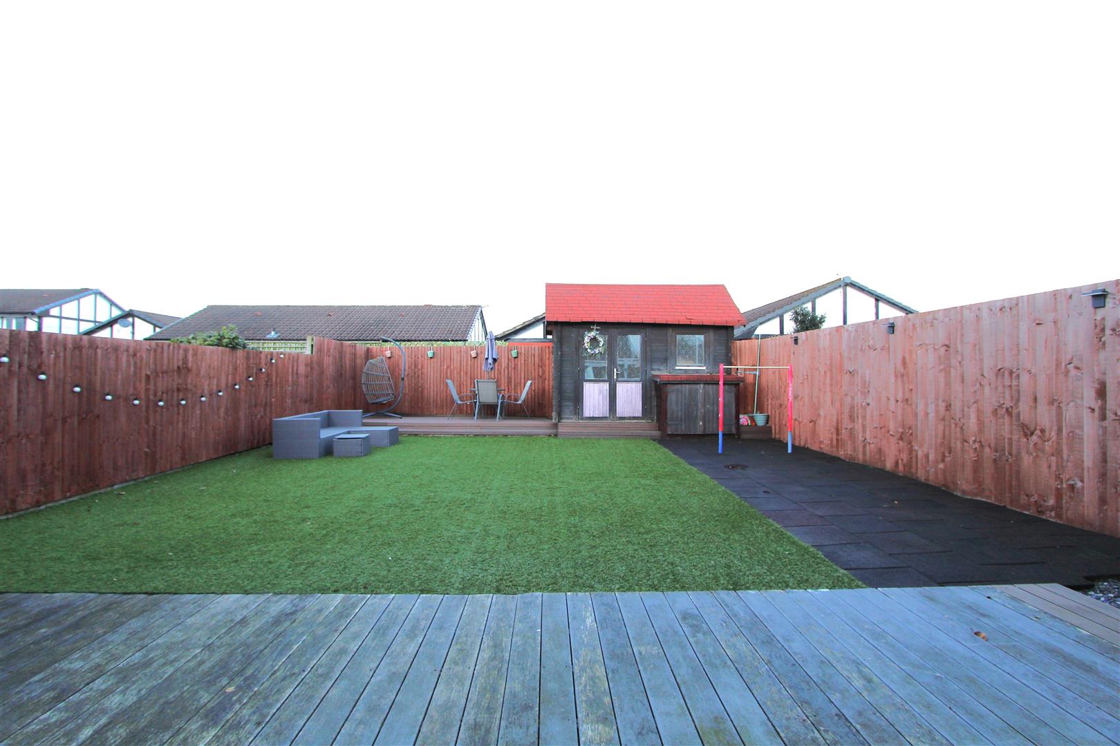 The expansive rear garden is perfect for children, entertaining and relaxation, or possibly future extension (subject to planning), enhanced by a versatile outbuilding ideal for a home office, gym or creative space. A generous driveway provides parking for multiple vehicles. Offered freehold and chain-free, this is luxury living at its finest.